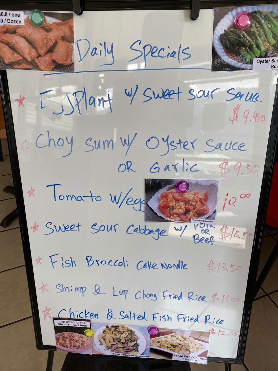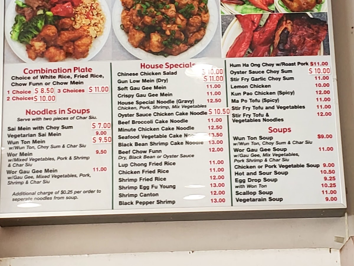 Substitute chicken, char siu, lup chong, fish (with extra charge) or shrimp (with extra charge).