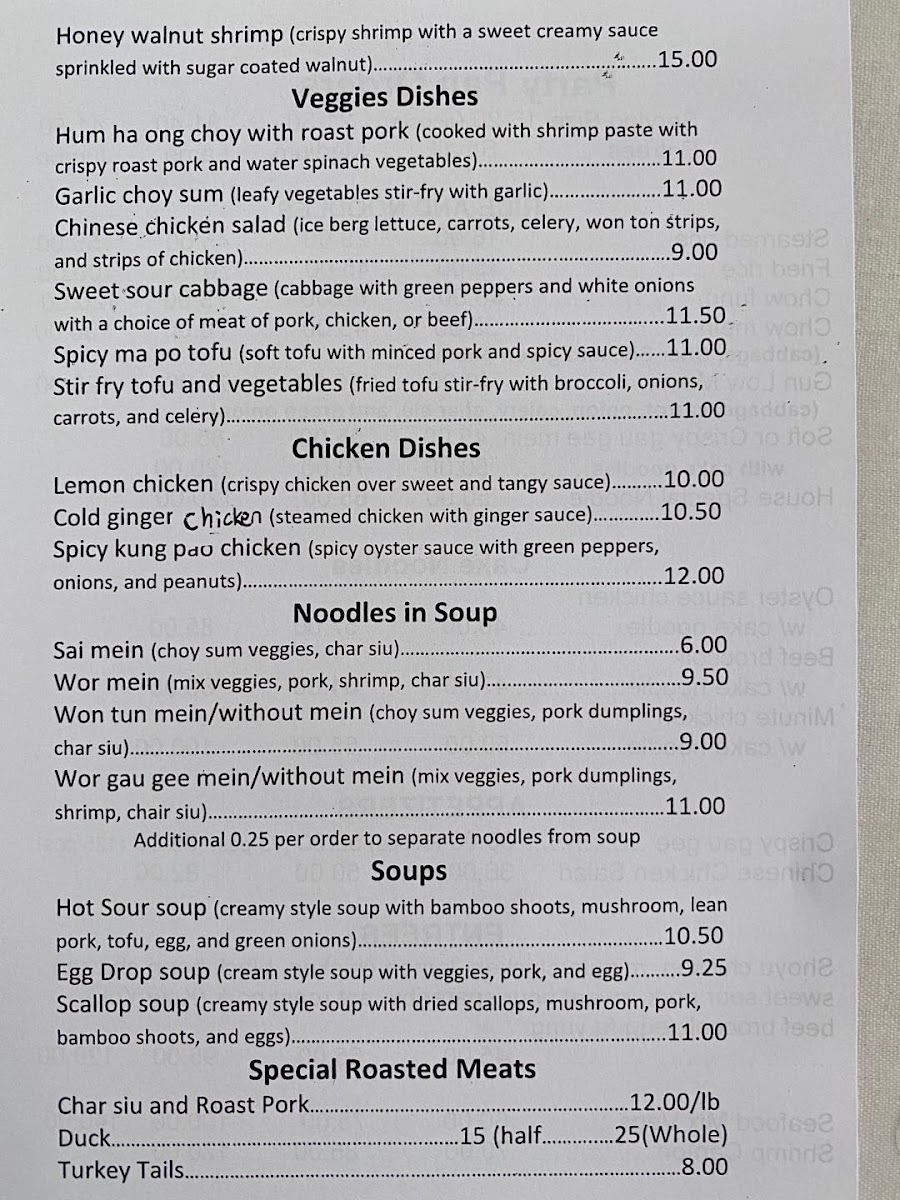 From a reviewer’s perspective, the menu at Temple Valley Chinese Restaurant feels like a well-rounded showcase of classic Chinese comfort food designed to satisfy both everyday diners and larger gatherings. The selection of soups such as Scallop Soup, Egg Drop Soup, Wonton Soup, and Hot Sour Soup sets a familiar and comforting tone. For heartier meals, the restaurant offers flexibility through Special Combo Plates and Dinner Combo Plates with 1 Choice or 2 Choices, making it easy to customize a meal. The Special Roasted Meats section stands out with traditional favorites like Roast Pork, Turkey Tail, Char Siu, Shoyu Chicken, and Roast Duck (Half), reflecting a strong Cantonese influence. Staples such as Chow Fun, Chow Mein, and White Rice round out the meal, while sides like Manapua, Almond Cookies, Chinese Chicken Salad, Spring Roll, and Crab Rangoon add variety and texture.